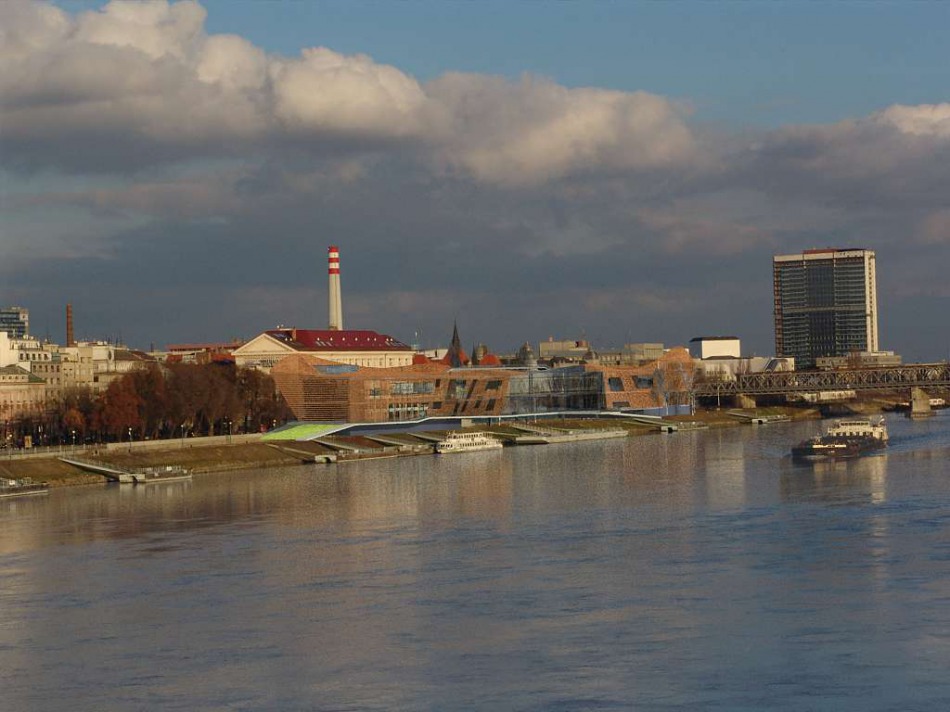 Návrh rekonštrukcie osobného prístavu lodnej dopravy na brehu Dunaja. Veľkolepá myšlienka stvorenia nového architektonického symbolu Bratislavy , zároveň aj prechodu z rieky spájajúcej Európu do mesta Bratislavy – bránou.